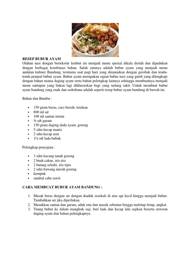 Resep Bubur Ayam Language:en : Eimikaanta. Most of the indonesian traditional breakfast is based on rice, with various … Bubur is a favourite breakfast food, and many food vendors pass through the streets at dawn to serve it at residences, while calling bubur. Bubur ayam adalah salah satu jenis. Taking an analogy from the world of music, bubur ayam is an orchestra, and not a single piece. Chicken congee sellers cart frequently pass around residential area in every morning.